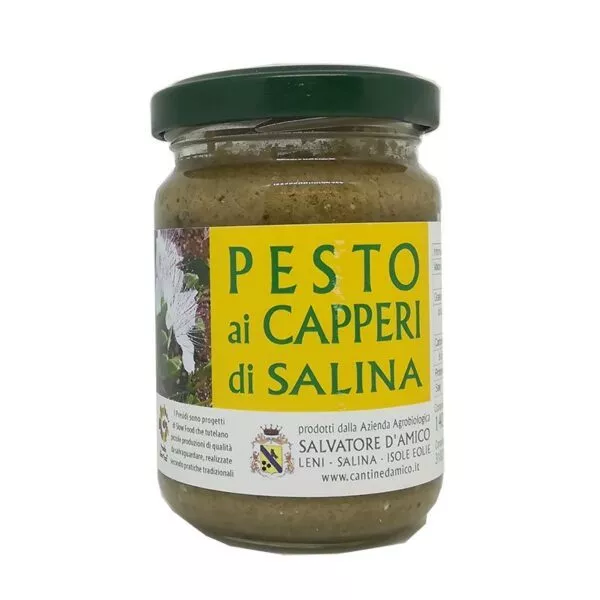 ! Élaboré 100% artisanalement sur l’île de Salina, dans le village de Leni, par – un producteur réputé pour ses câpres d’exception – ce pesto allie huile d’olive, amandes, basilic et ail dans un équilibre parfait.Les câpres de Salina, considérées comme les